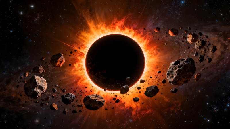 黑洞吞噬行星陨石环绕周遭星云绚丽