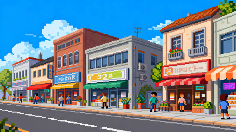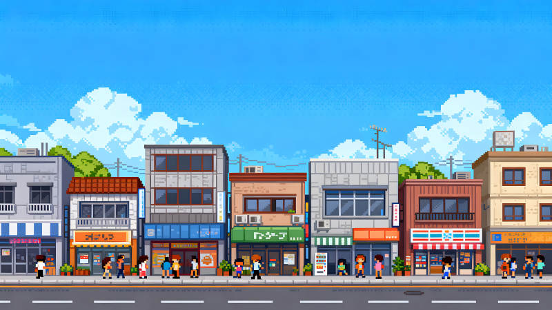 像素风格的街道景观建筑