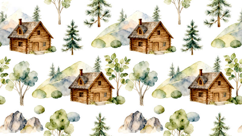 山间小屋森林图案
