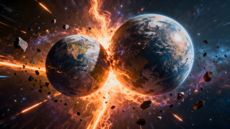 两颗行星碰撞的宇宙奇观