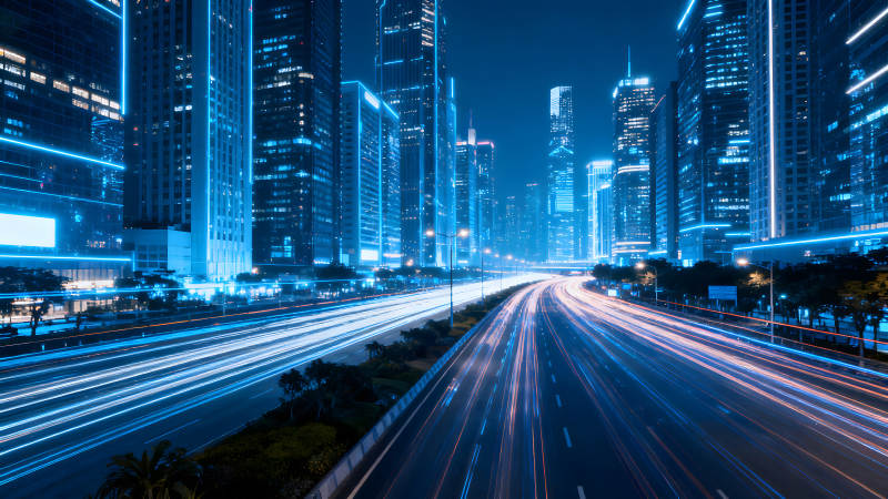 城市夜景高速车流蓝光