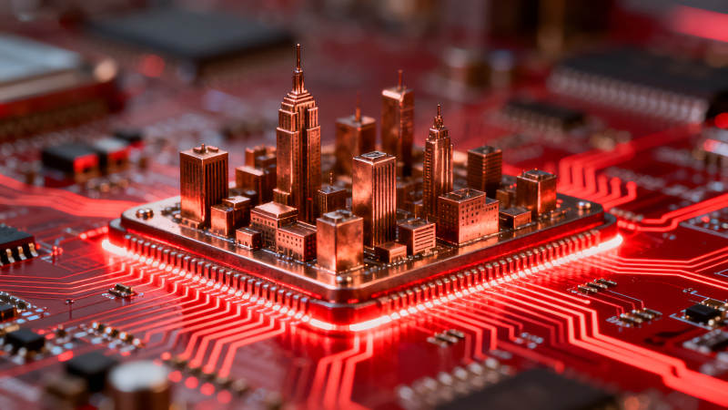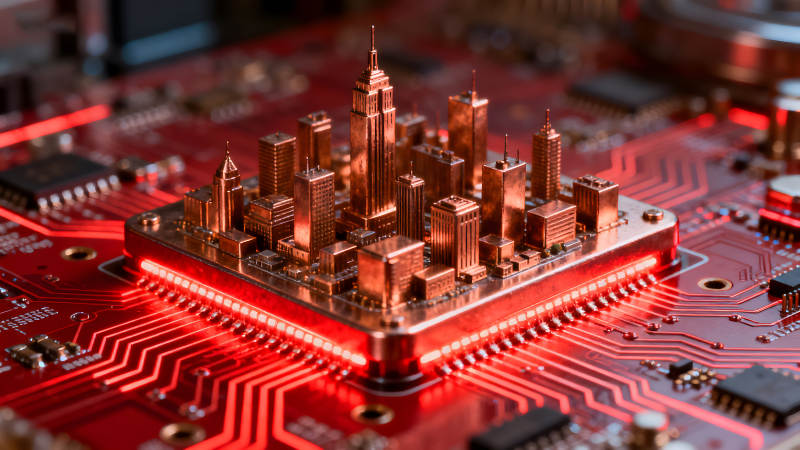 电路板上的微型城市建筑