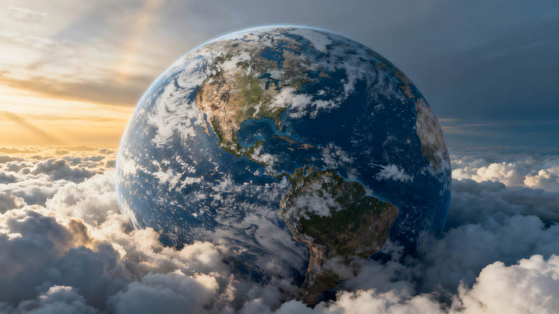 地球悬浮云层之上