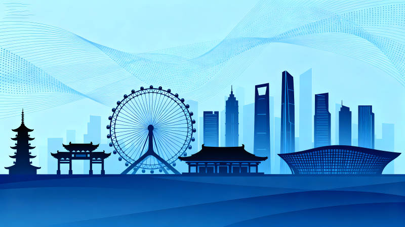 蓝色城市天际线风光图