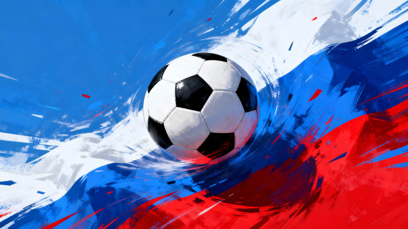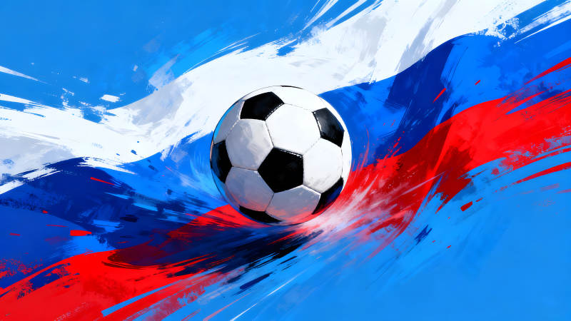 足球在俄罗斯国旗背景下