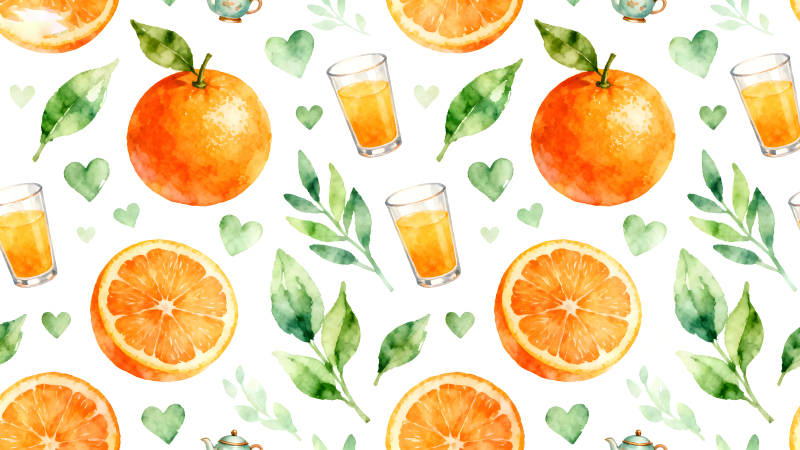 水彩风橘子果汁图案