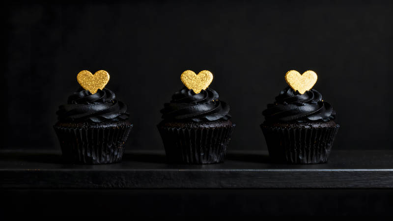 黑色的纸杯蛋糕和金色的心