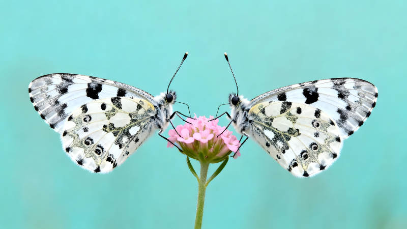 两只蝴蝶在花朵上停歇