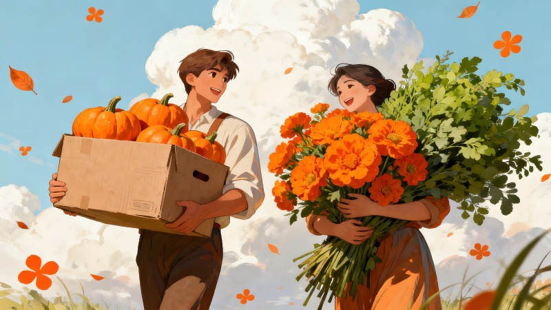 秋日丰收情侣收获喜悦