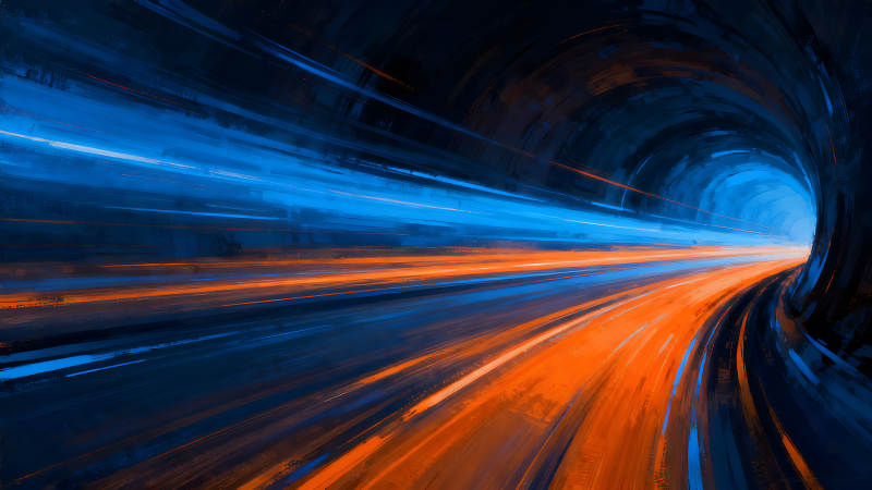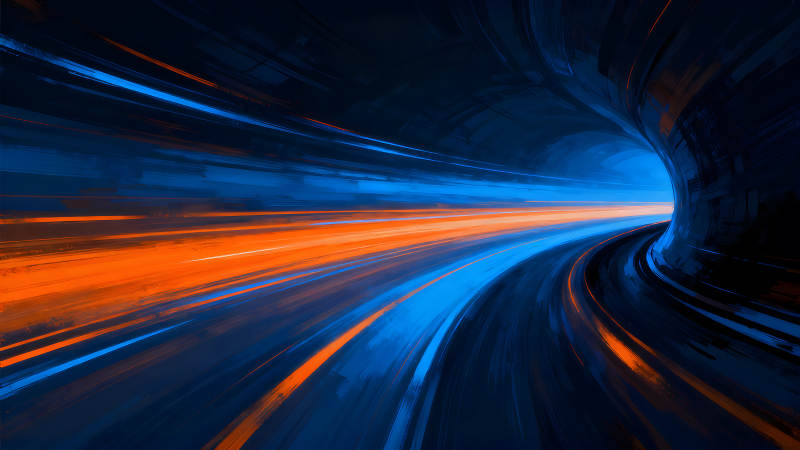 隧道光影疾驰橙蓝交织流光溢彩