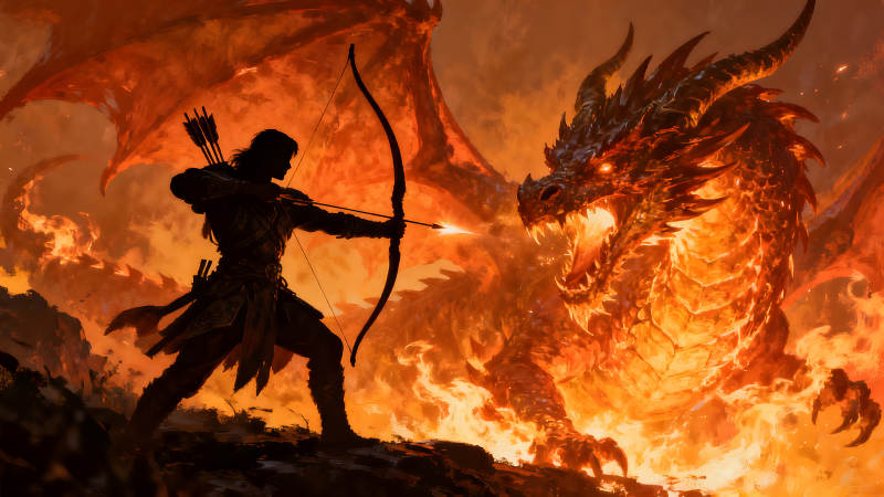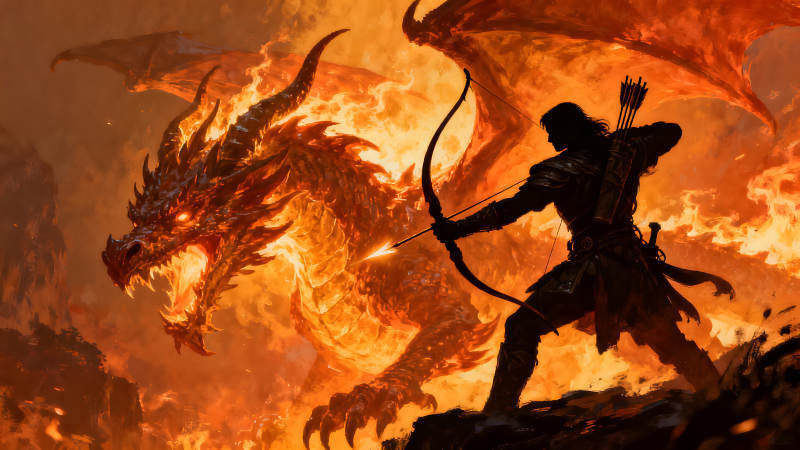 弓箭手大战火焰巨龙的场景