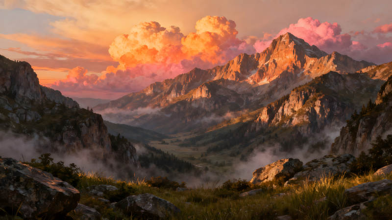 壮丽山景与云霞辉映的迷人时刻