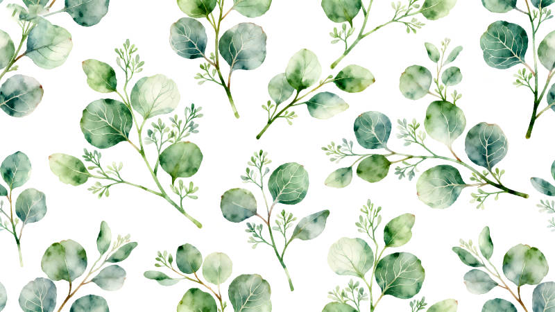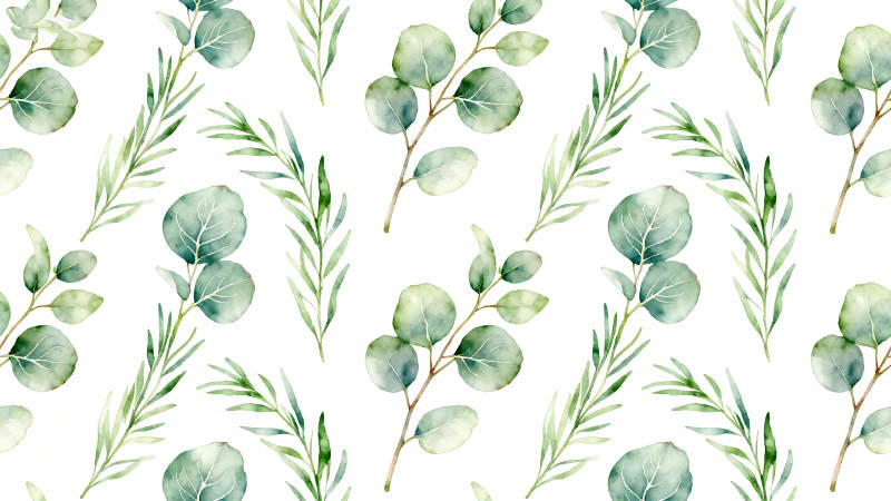 水彩桉树叶图案清新美丽