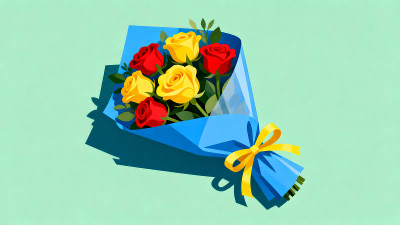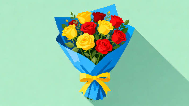 一束美丽的红黄玫瑰花束