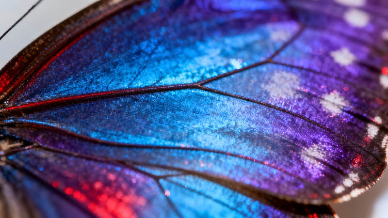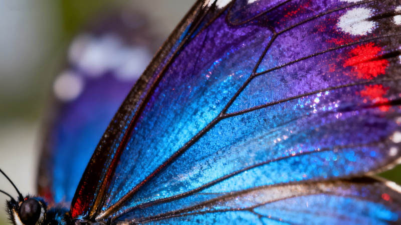 蝴蝶翅膀的微观世界展现蓝紫色的绚丽光彩