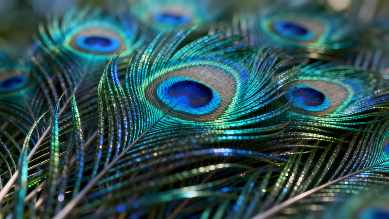 孔雀羽毛的特写色彩鲜艳质感细腻