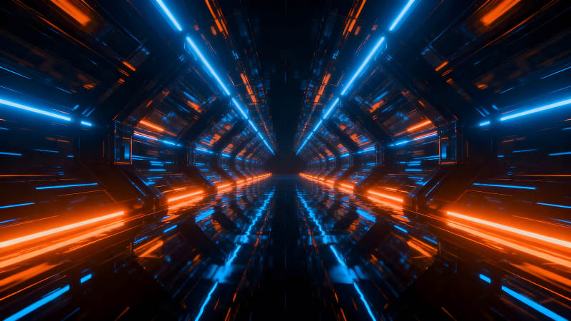科幻隧道蓝色橙色光线