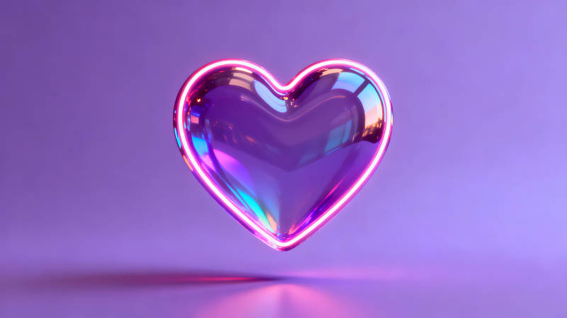 发光的3D心形悬浮在紫色背景上