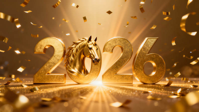 2026年新年金色数字和马的图案