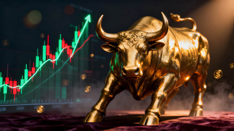 金色公牛与股市图