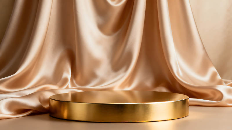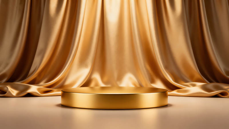金色展示台和绸缎背景