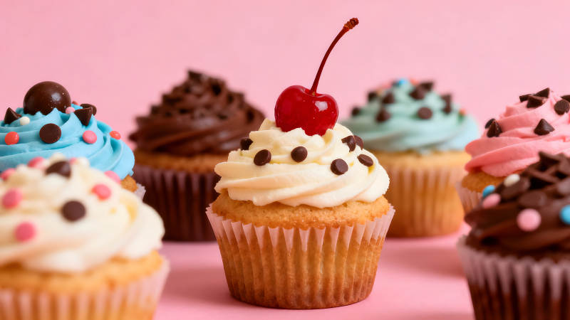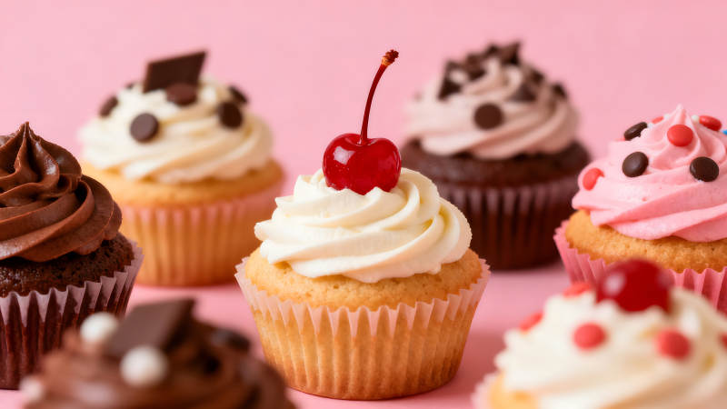 各种口味纸杯蛋糕特写