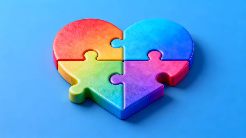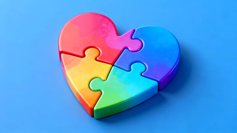彩色拼图组成的心形图案
