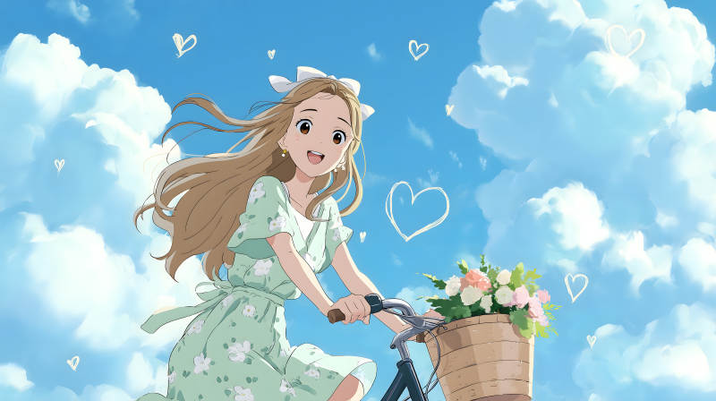 骑车女孩晴空万里