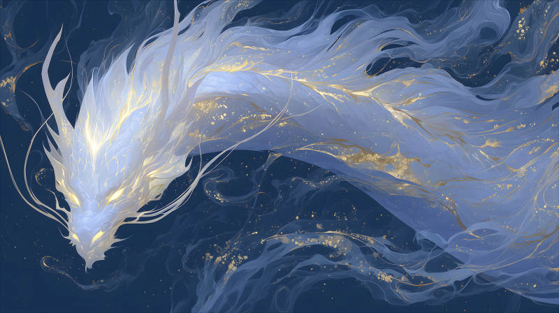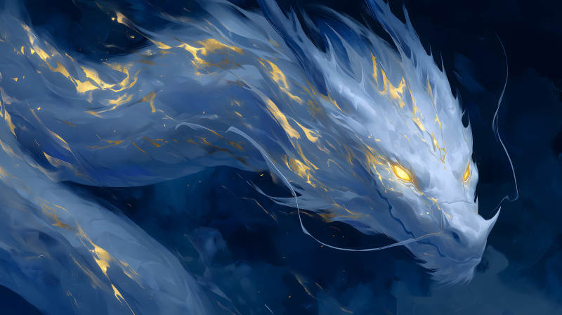 水墨蓝龙金色光芒