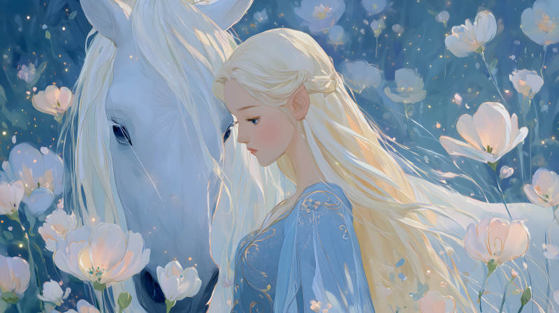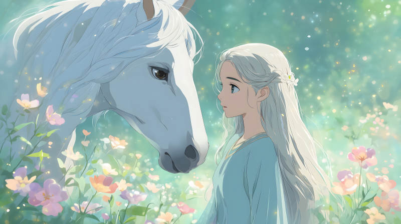 少女与白马的梦幻景象