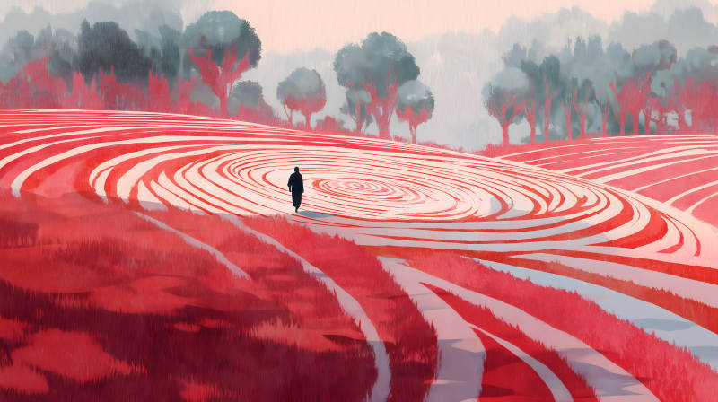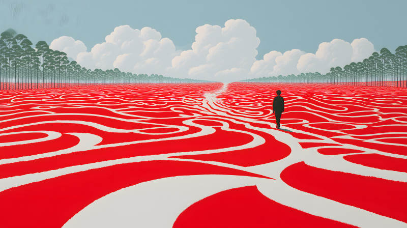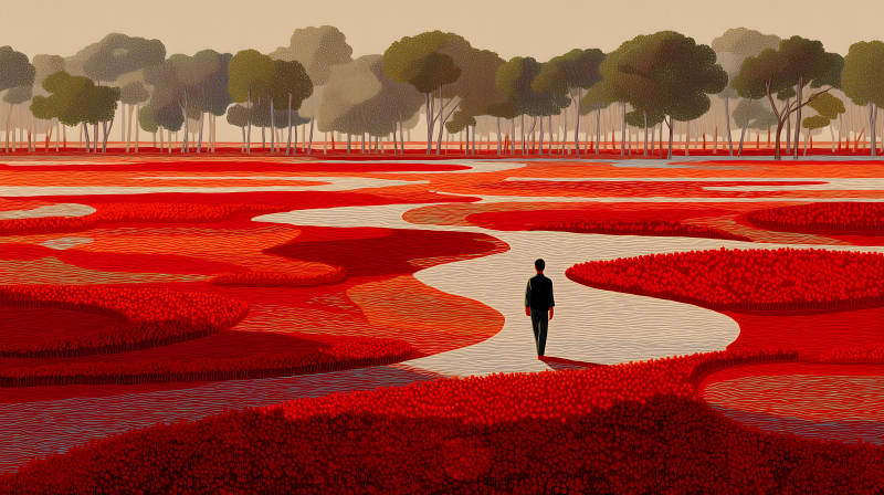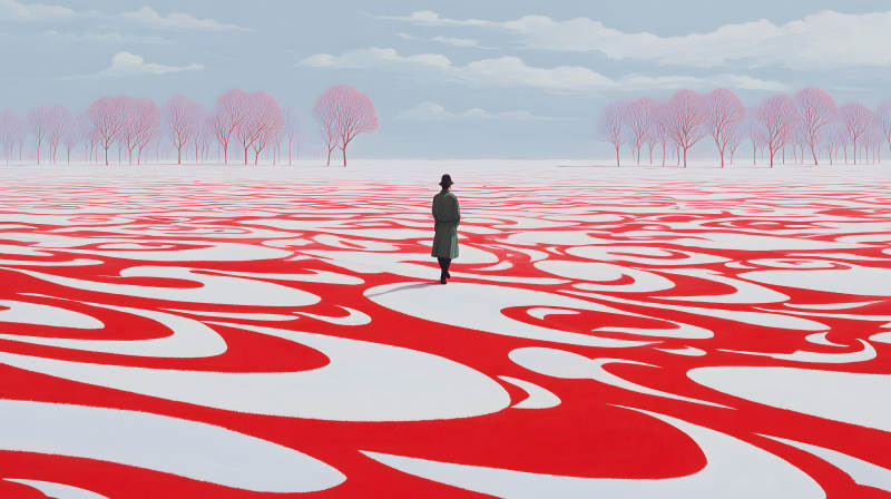 红色世界中的孤独行人