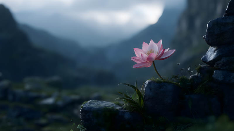 山间莲花绽放唯美