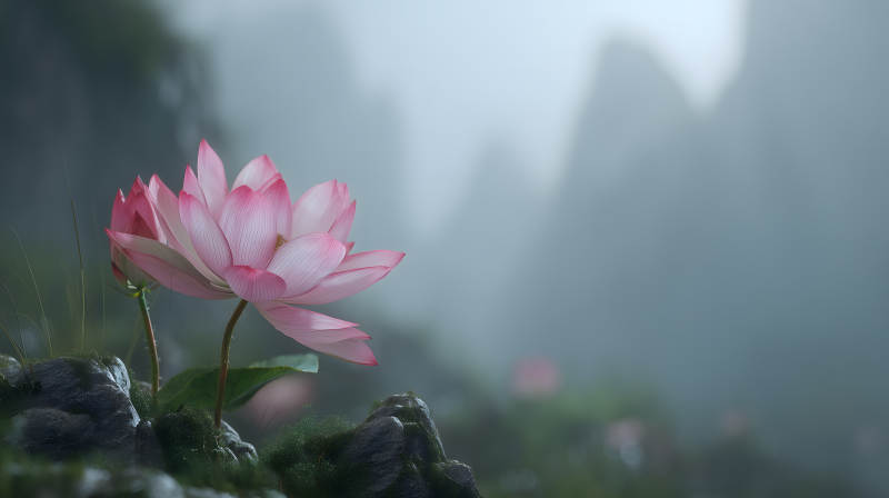 粉色莲花雾中