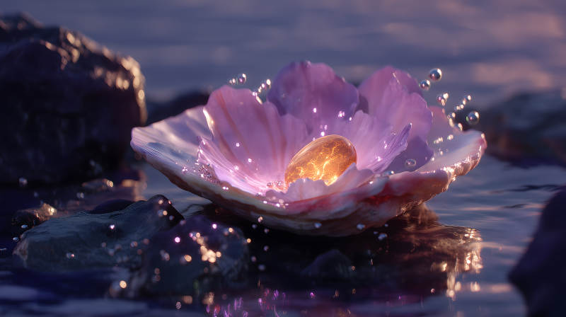 贝壳中的莲花与珍珠