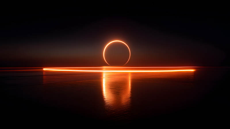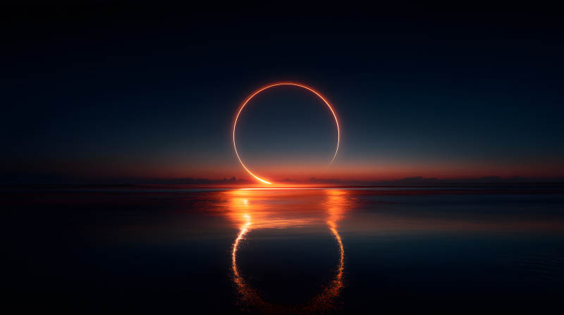 夜空光环倒影海面