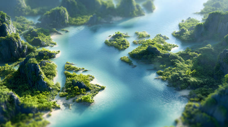 绿色岛屿环绕碧海