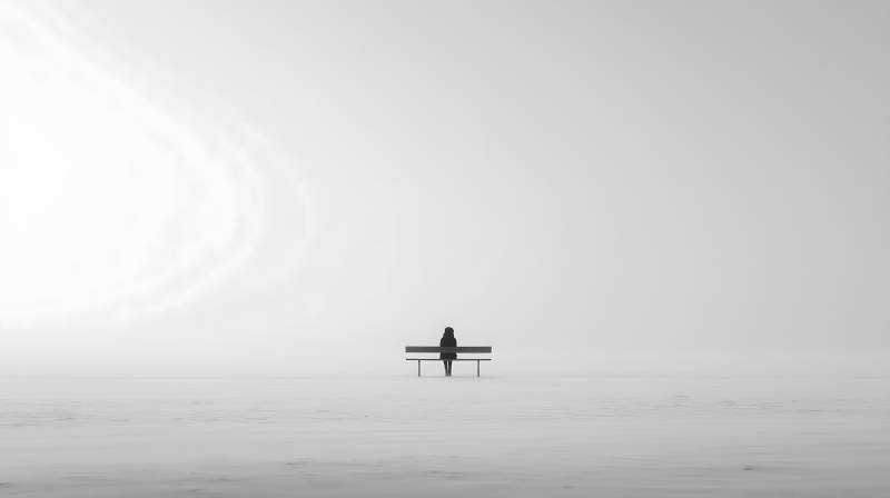 孤独长椅上的人影