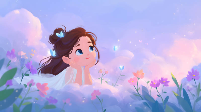云朵女孩仰望蝴蝶
