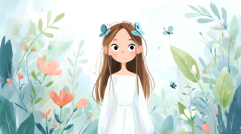 女孩与蝴蝶花卉