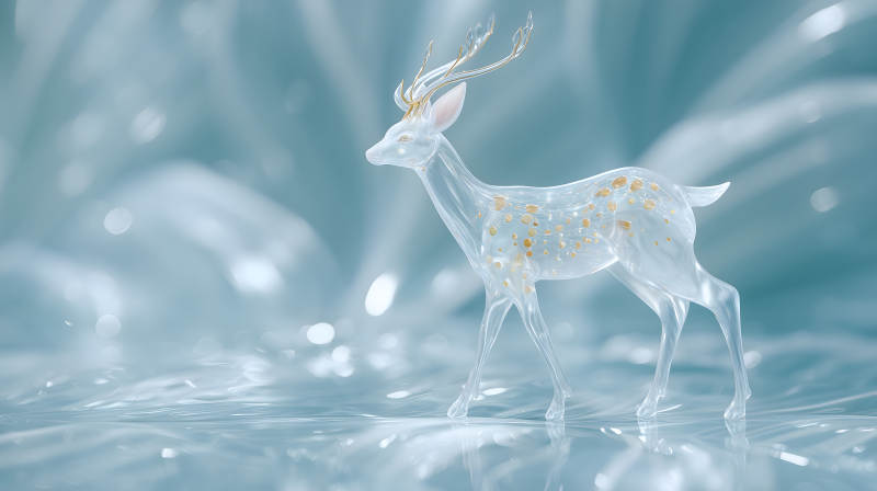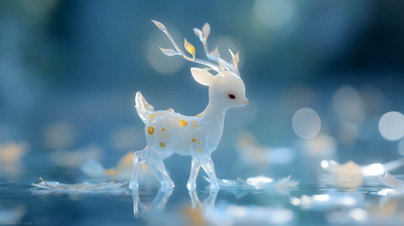 水晶精灵鹿在水面
