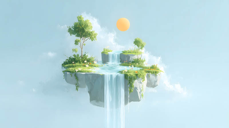 空中岛屿瀑布景色