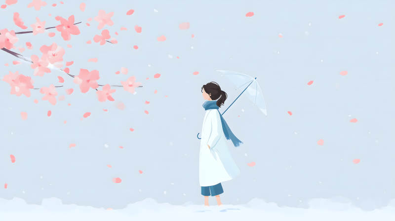 粉色落樱下的女子