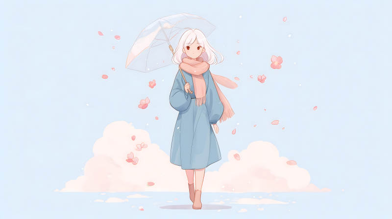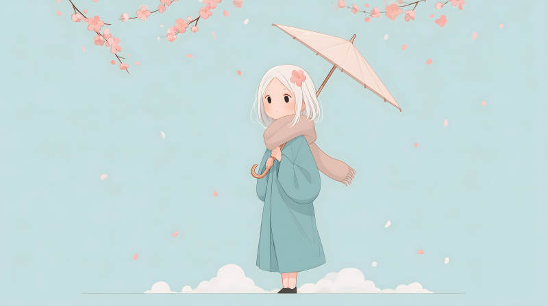 女孩撑伞赏樱花