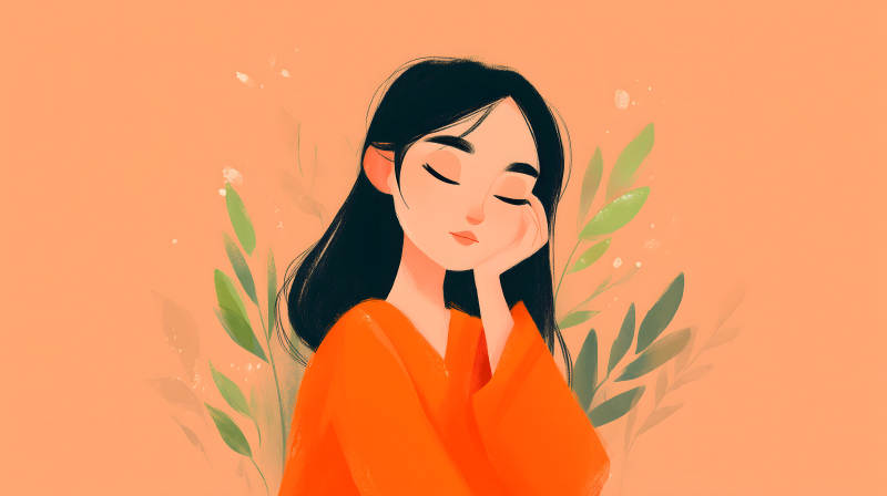 女孩闭眼沉思