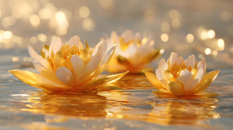 金色莲花水面绽放