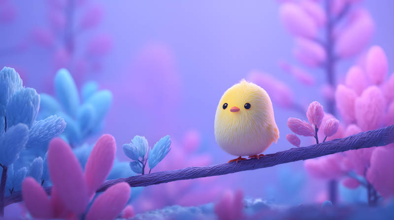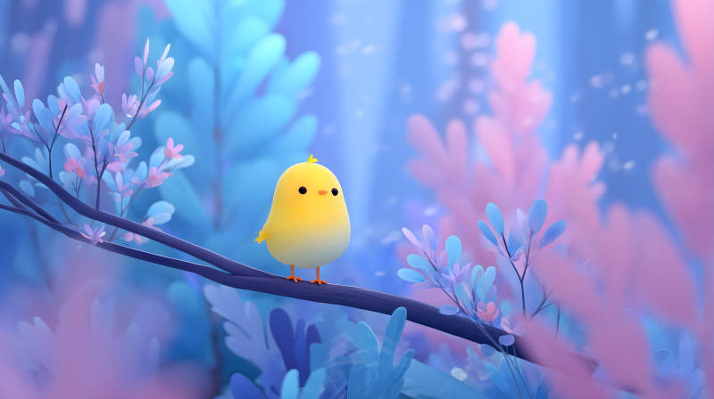 可爱小鸟栖息梦幻世界