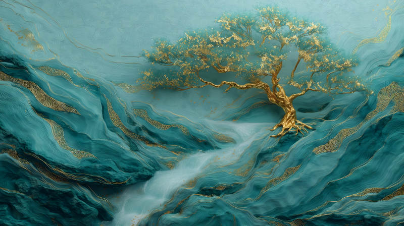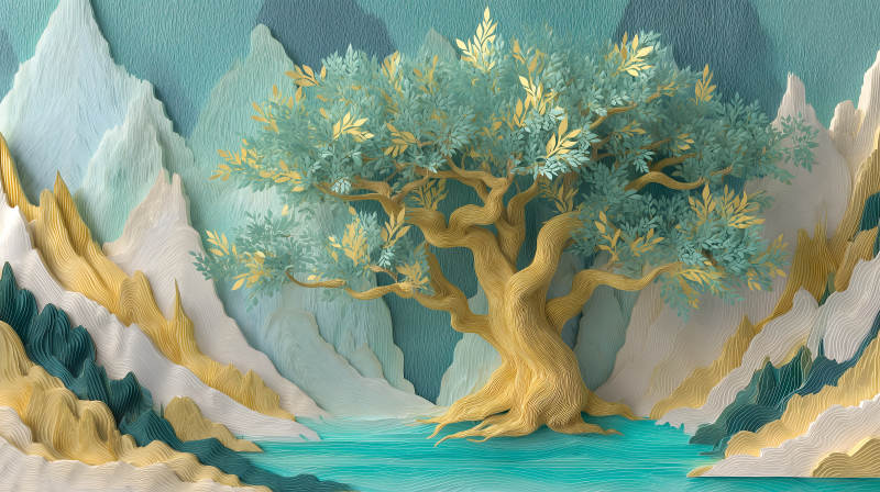 金色树木蓝色山川