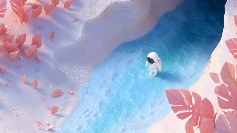 宇航员探索粉色世界