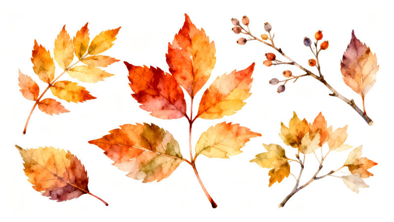 秋日落叶的唯美水彩图案