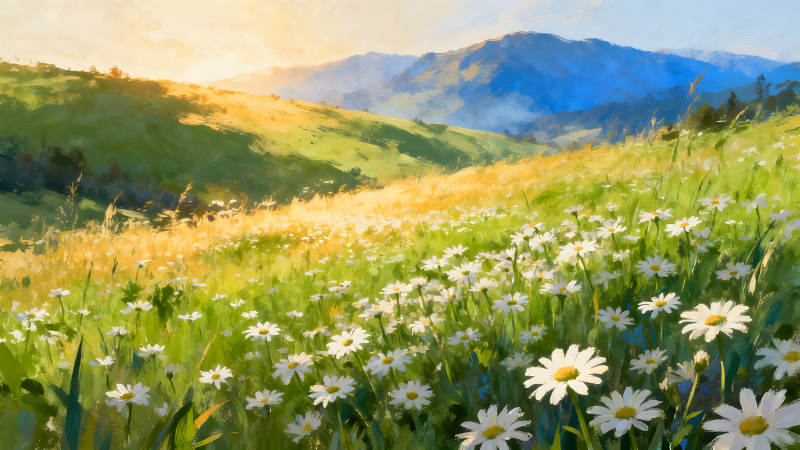 梦幻森林场景绿树环绕瀑布鲜花盛开